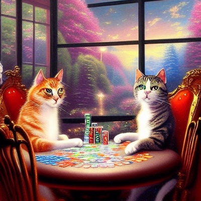 Cats Sitting At A Table Playing Poker R Stablediffusion